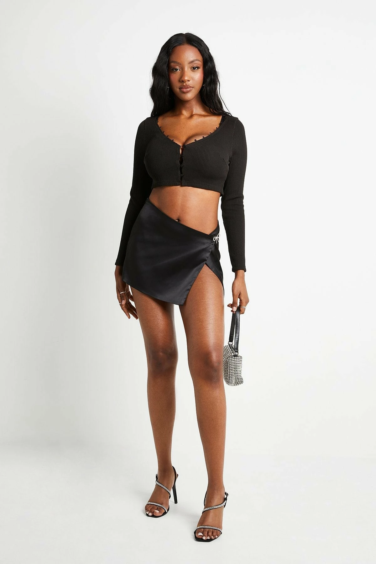 Be the first to review “SOLADO Bow Rhinestone Decor Split Hem Satin Mini Skirt” Cancel reply