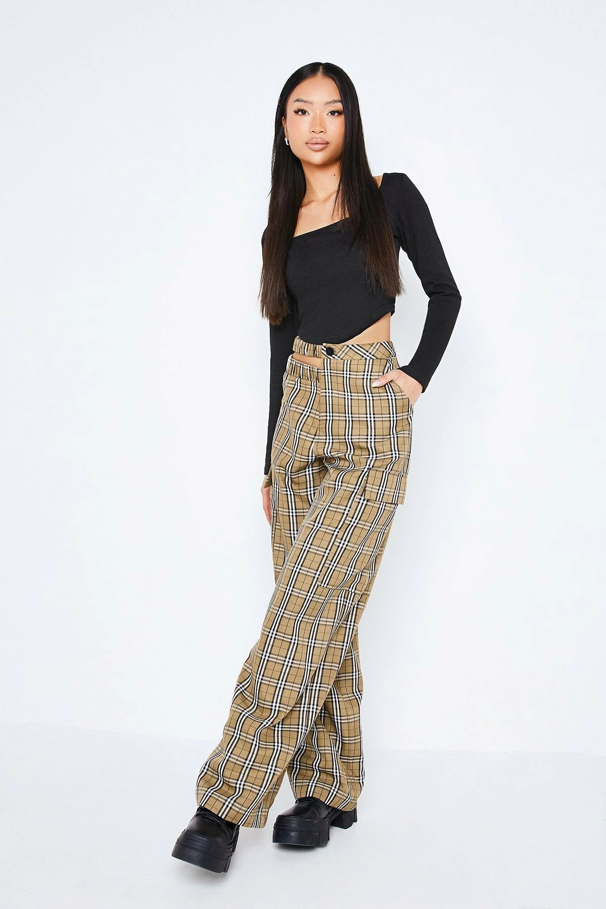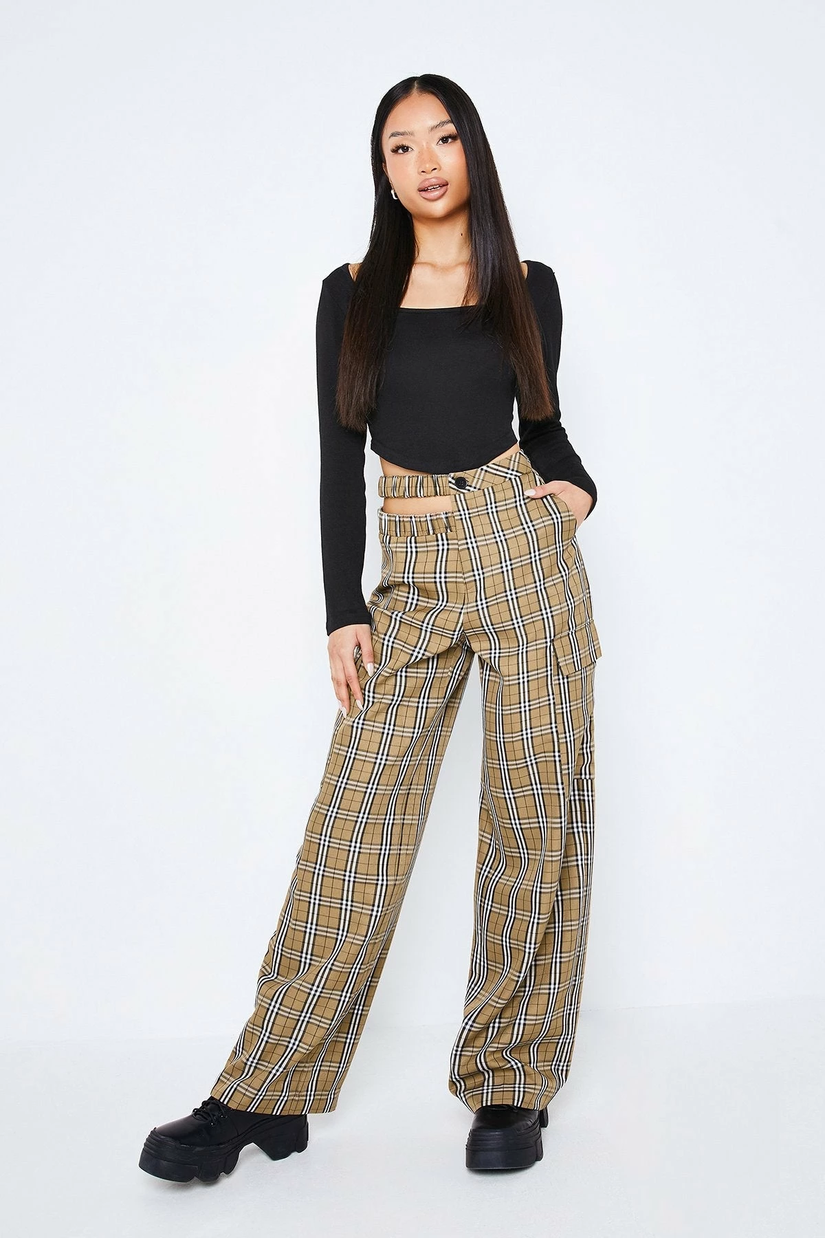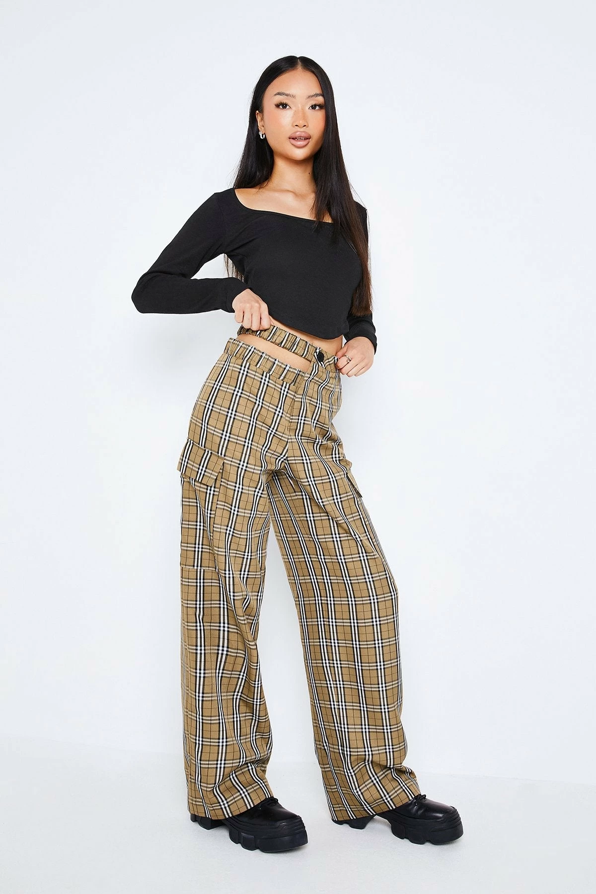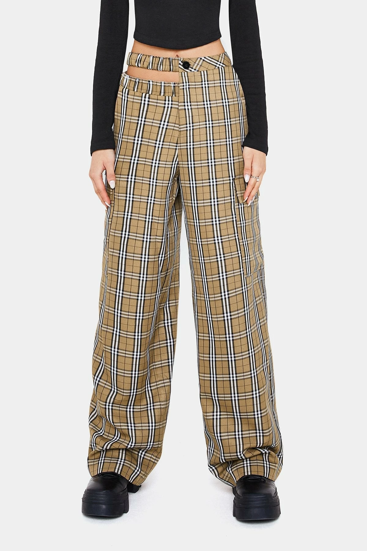 Be the first to review “SOLADO Check Print Cut Out Pocket Patched Straight Pants” Cancel reply