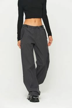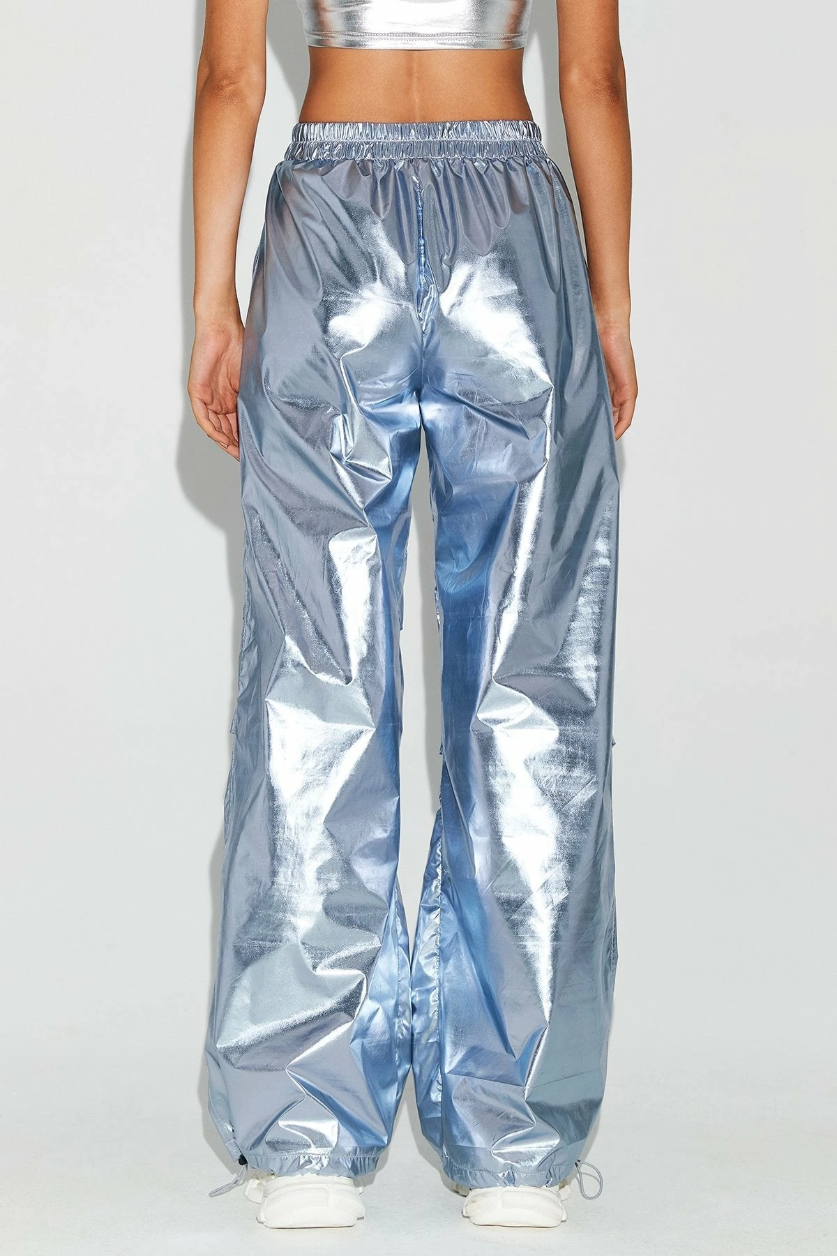 SOLADO Drawstring Hem Ruched Detail Sheen Cargo Pants