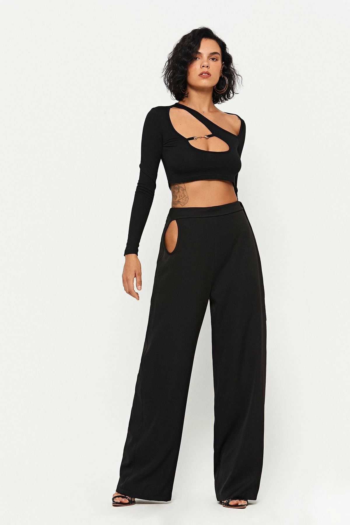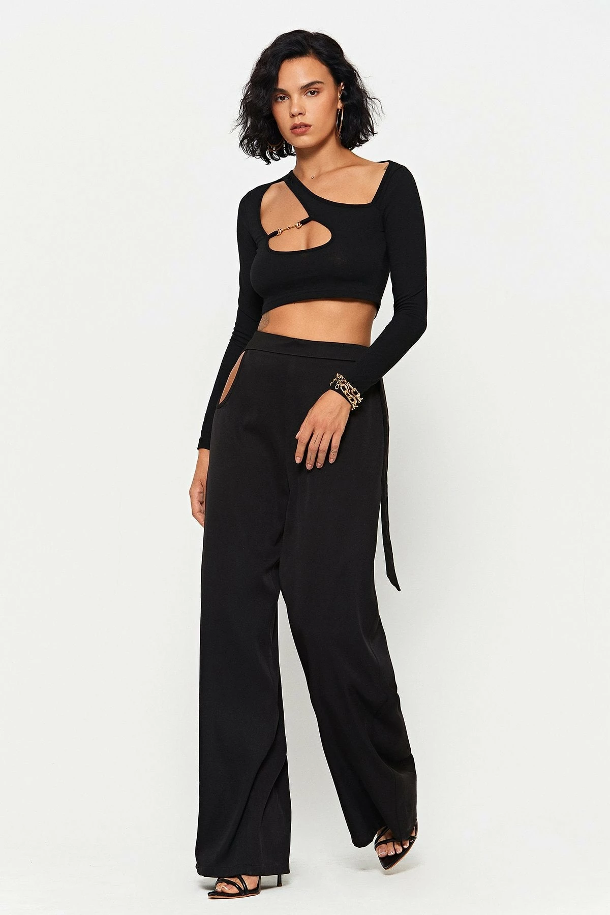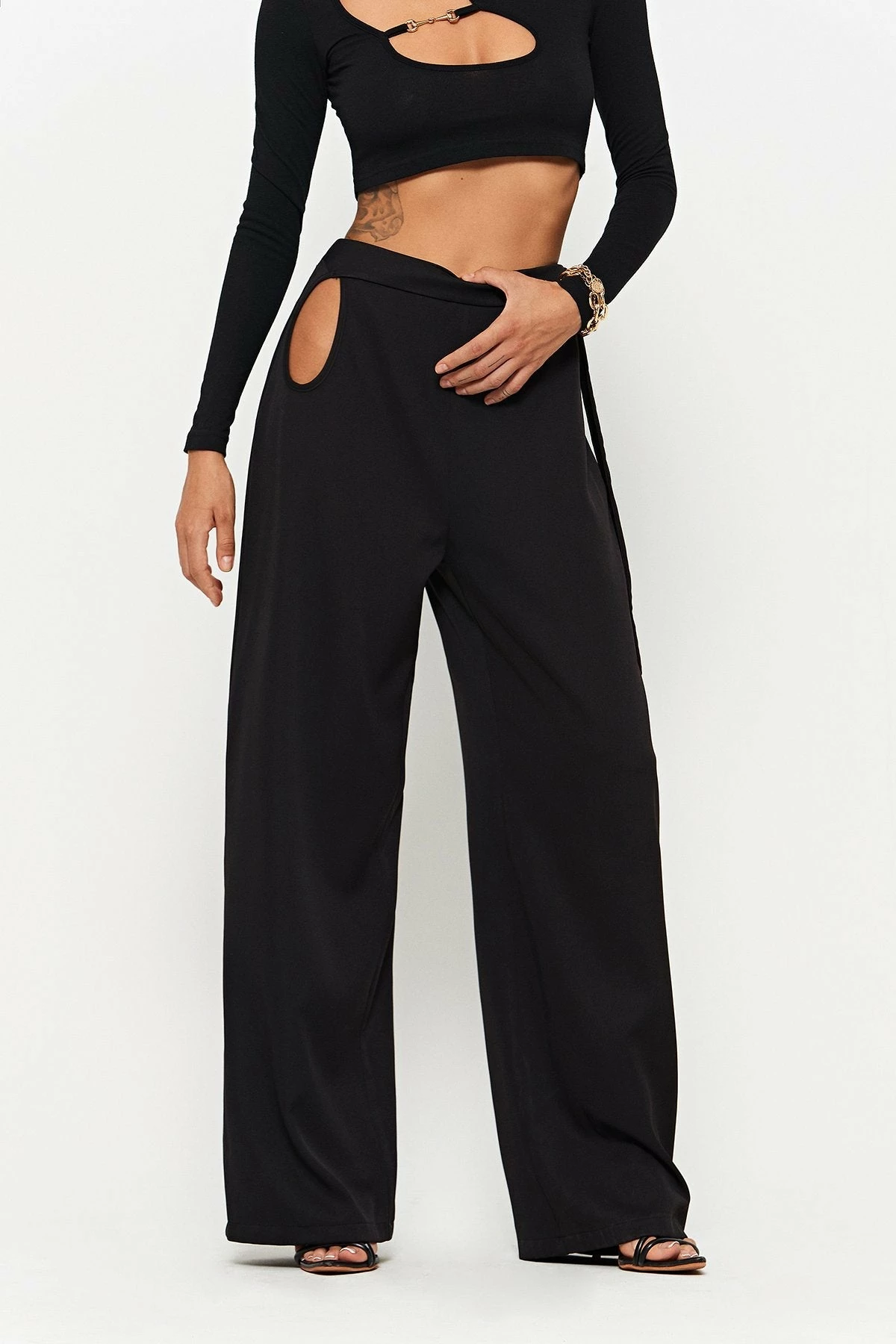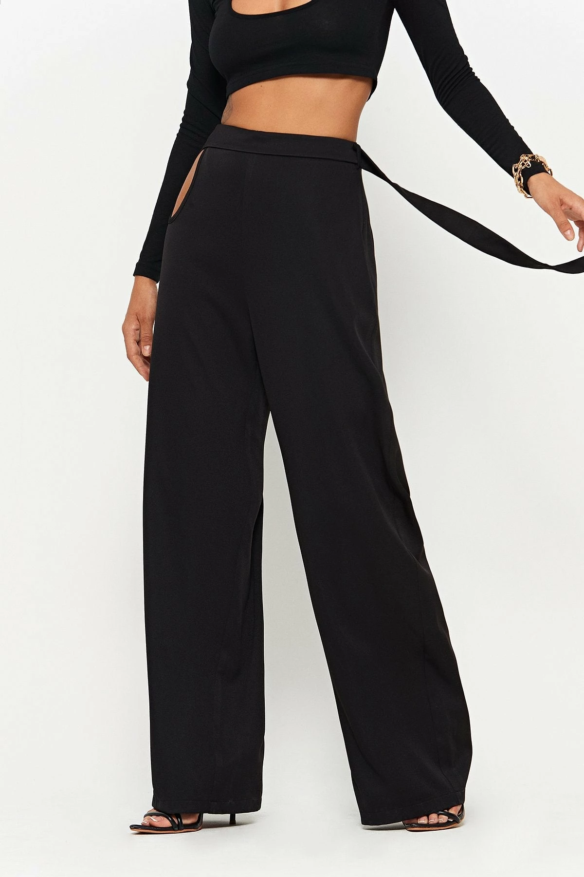 SOLADO High Waist Cut Out Draped Solid Suit Pants