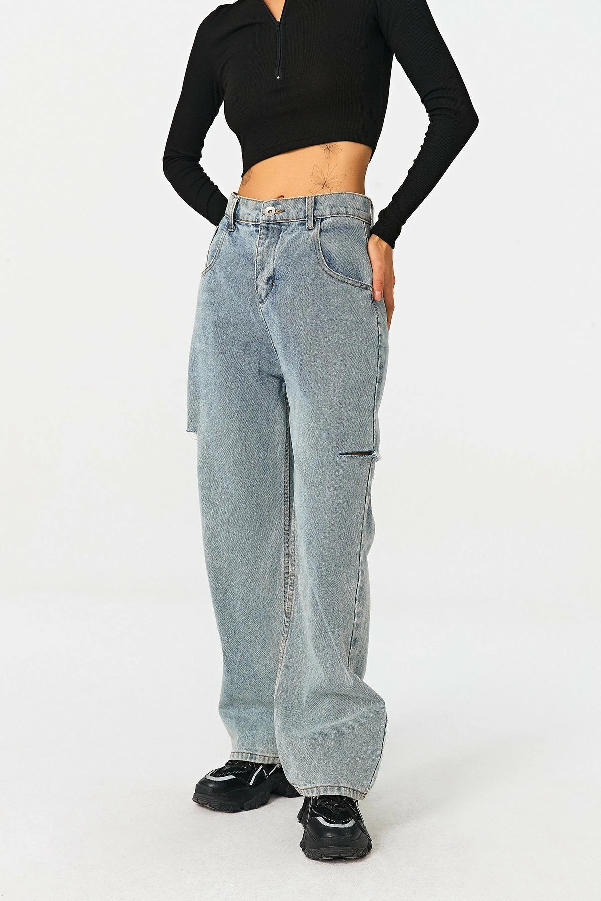 Solado High Waist Cut Out Dual Pocket Straight Leg Jeans