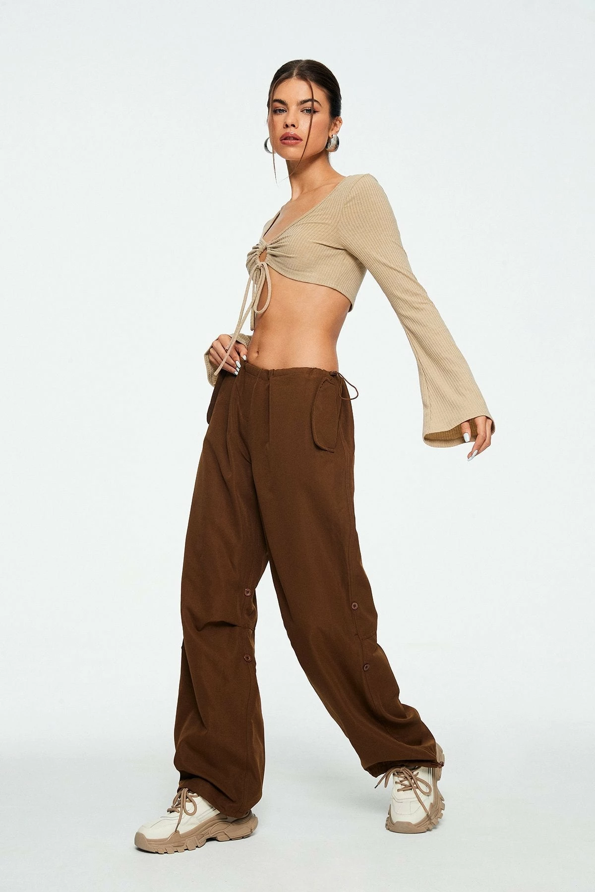 Solado High Waist Pocket Patched Drawstring Parachute Pants