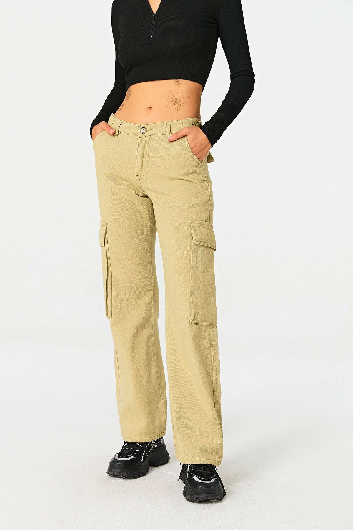 Solado Low Waist Pocket Patched Cargo Straight Pants