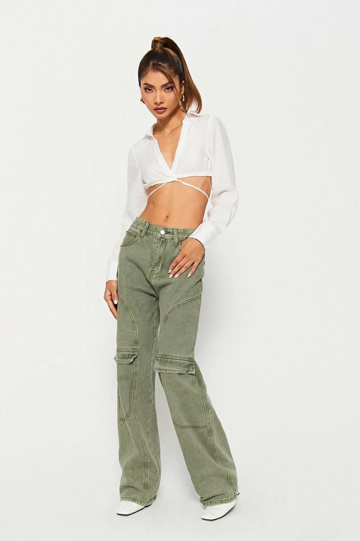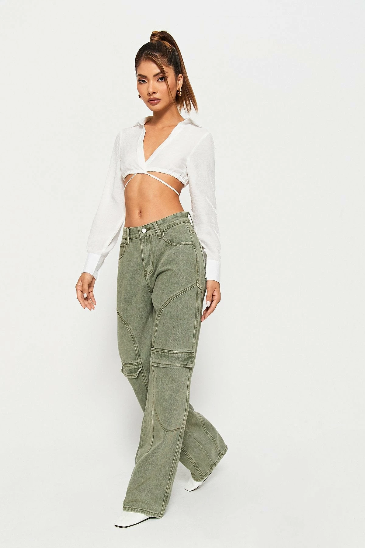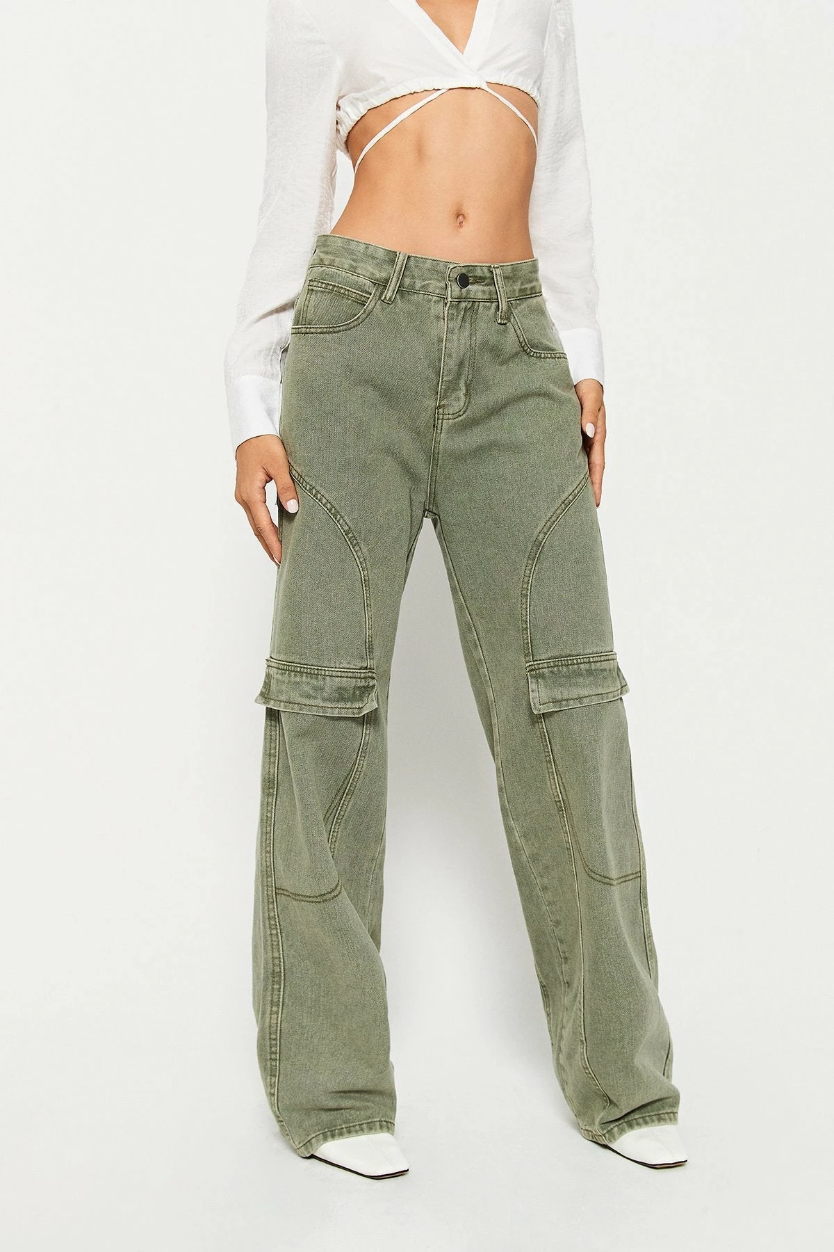 Solado Low Waist Pocket Patched Distressed Straight Leg Jeans
