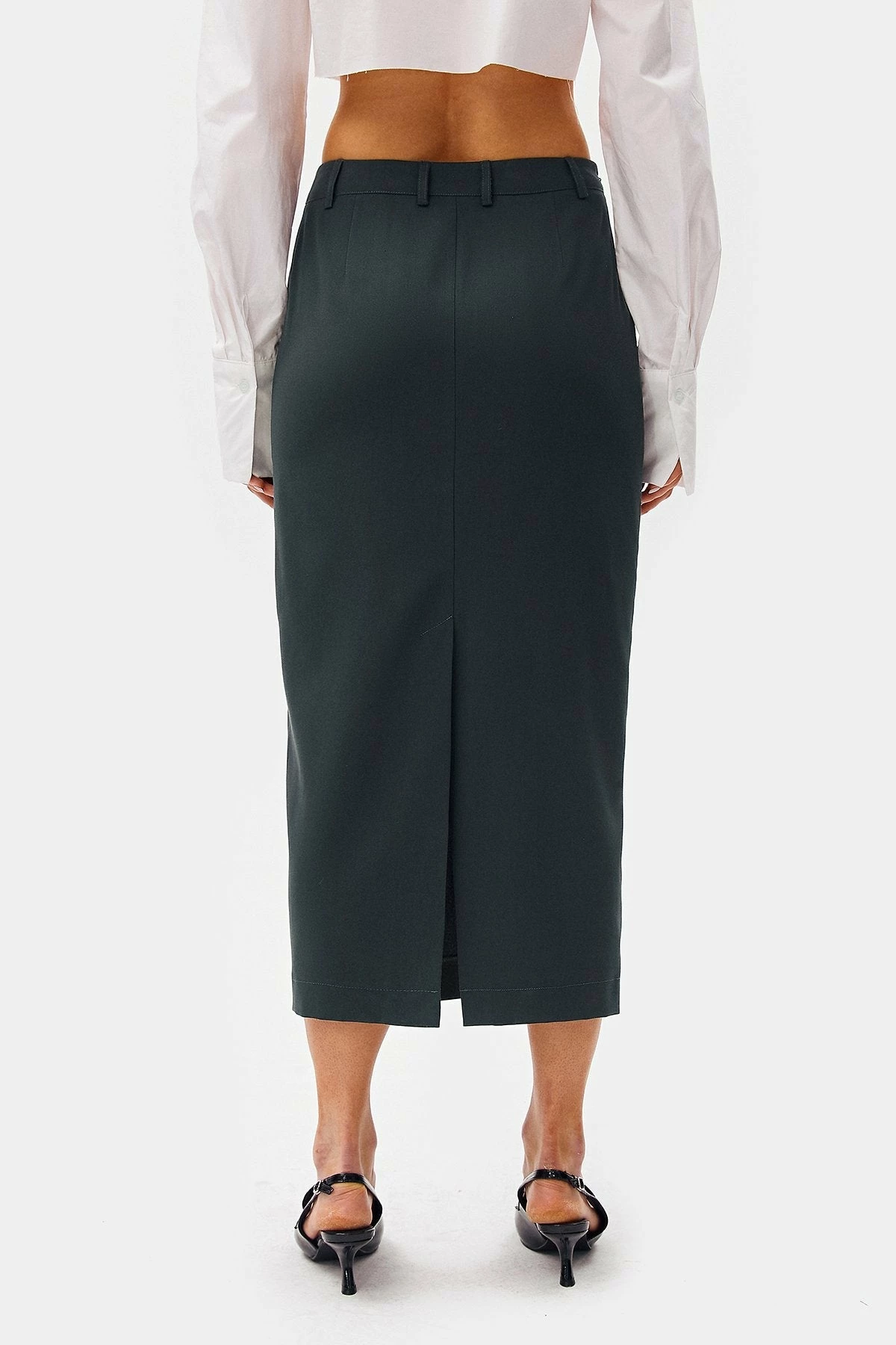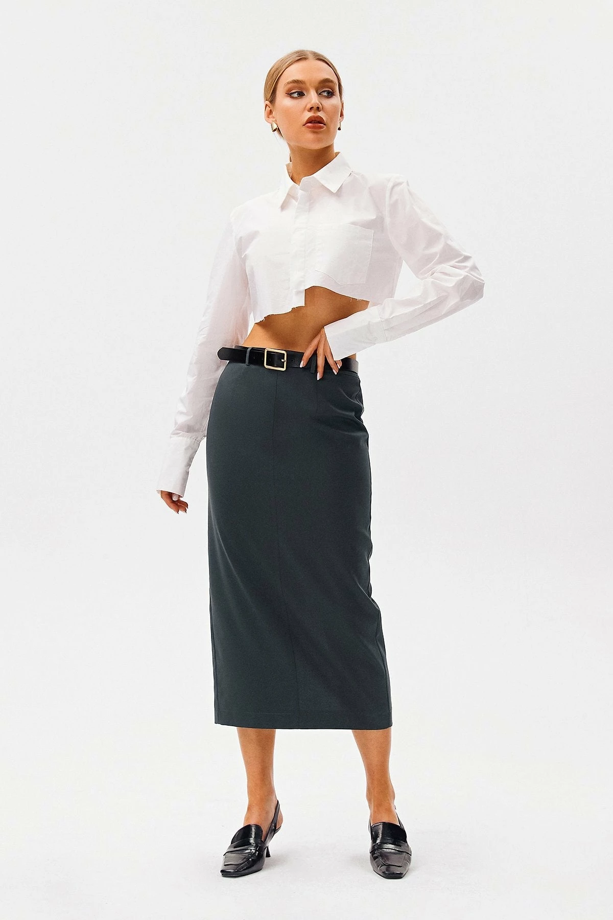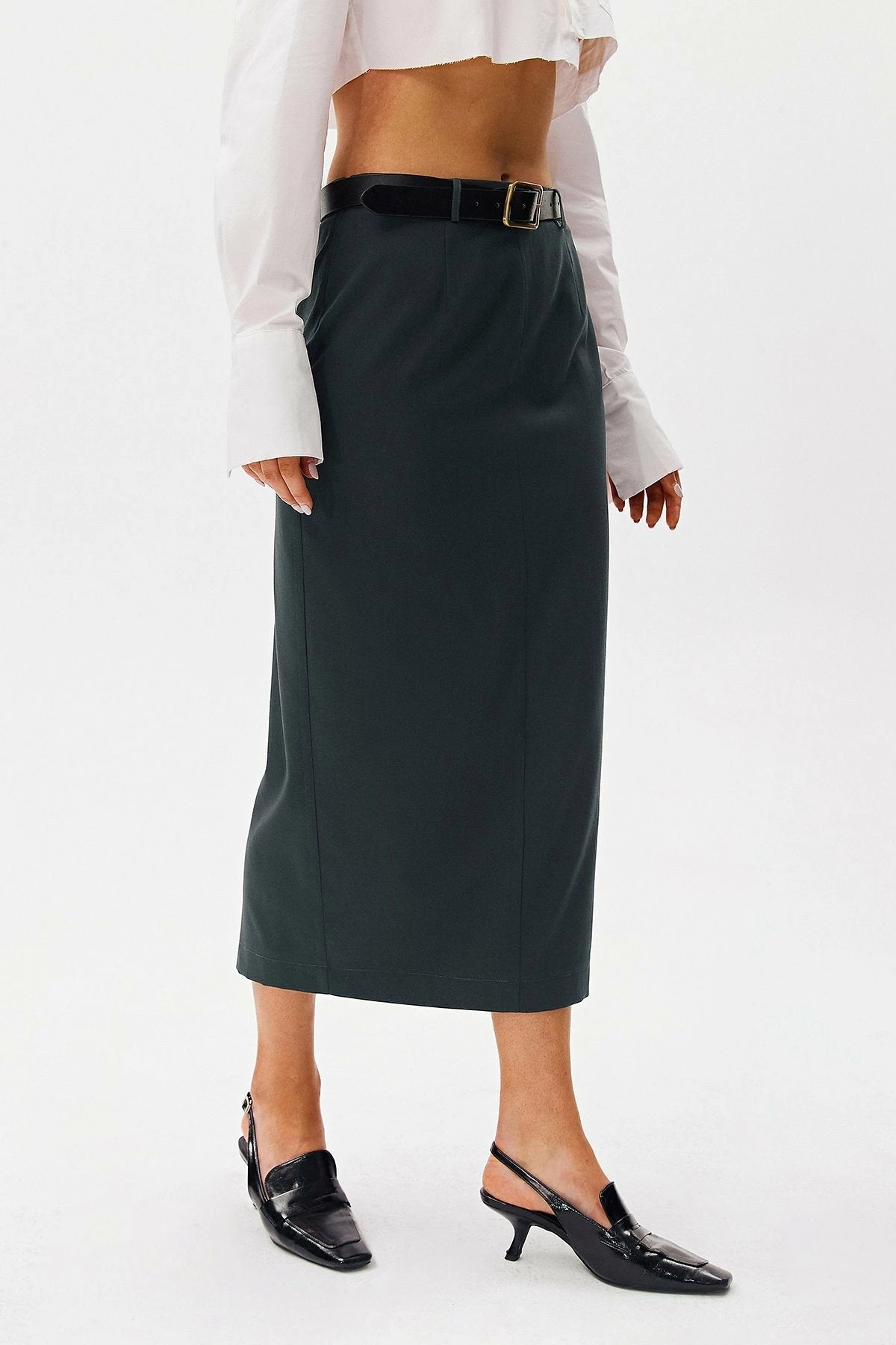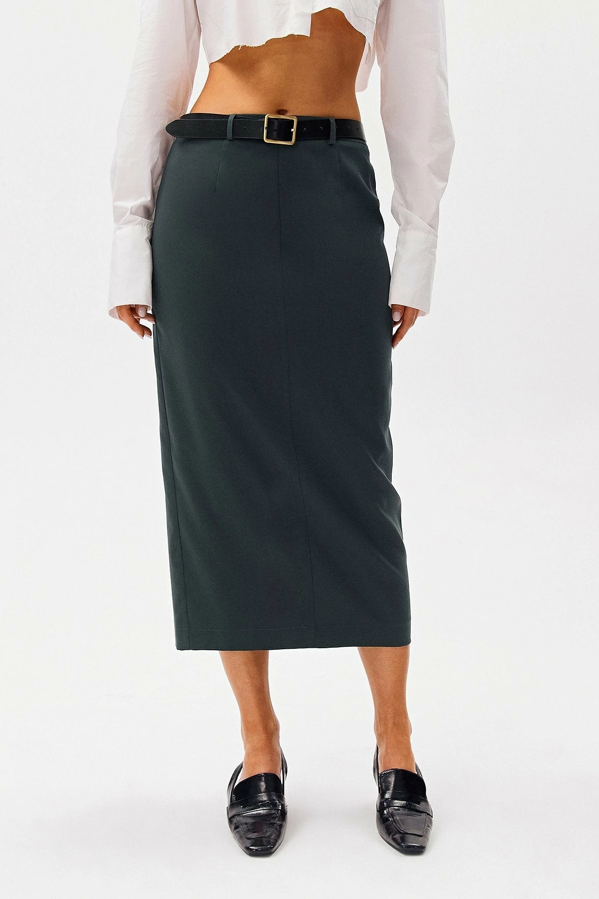 SOLADO Low Waist Split Hem Bodycon Midi Skirt Without Belt