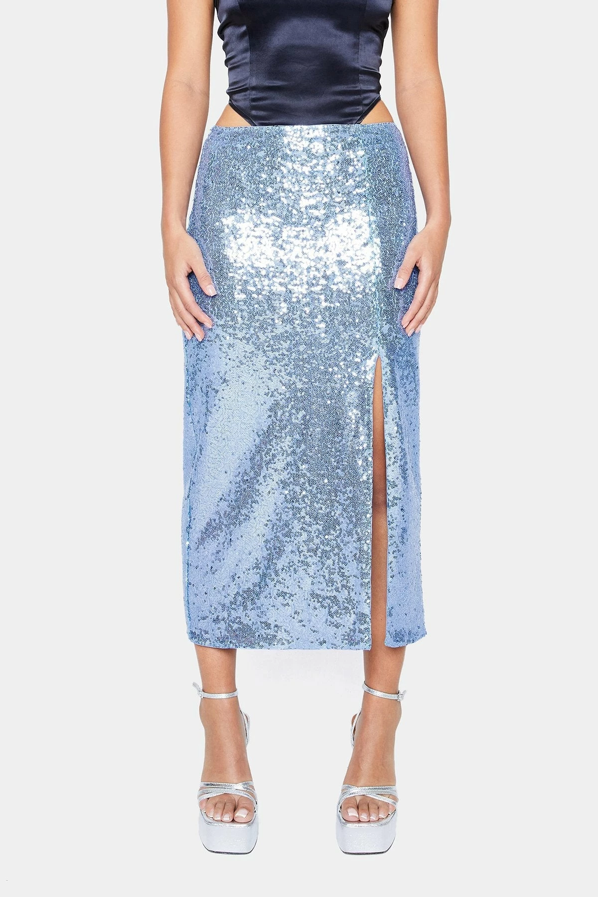 SOLADO Low Waist Split Hem Bodycon Sequin Maxi Skirt
