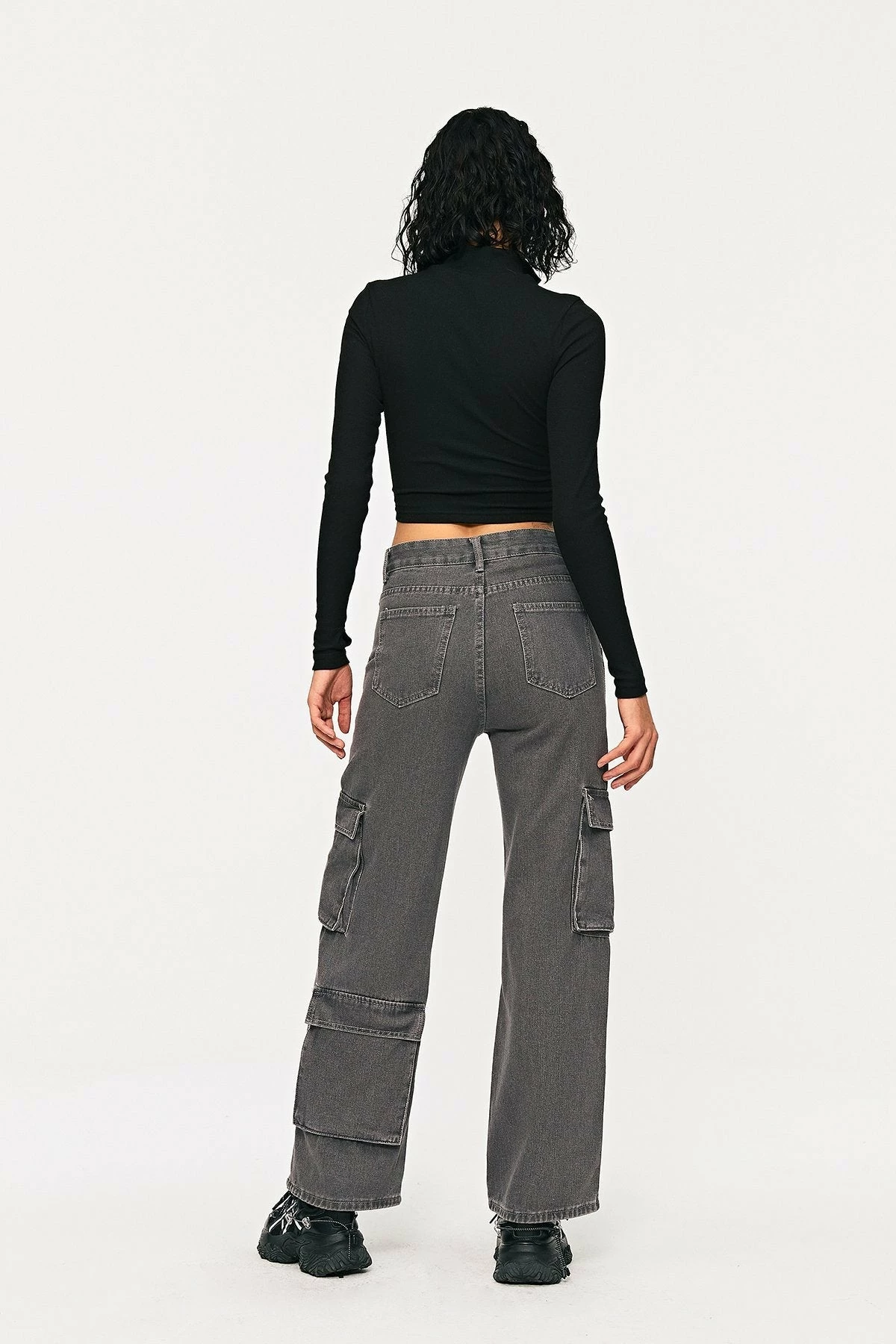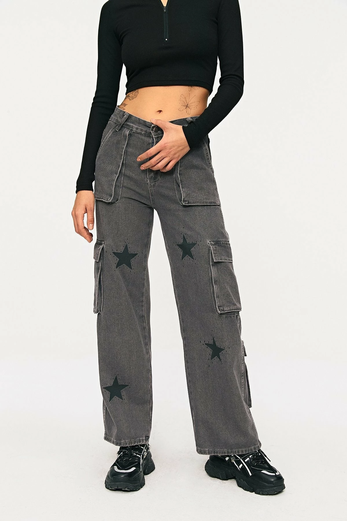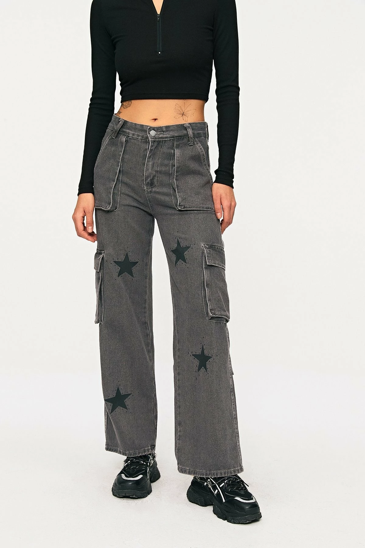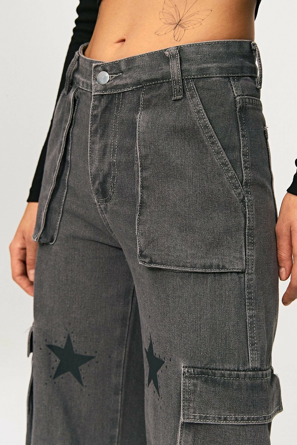 Solado Low Waist Star Print Pocket Patched Straight Leg Jeans