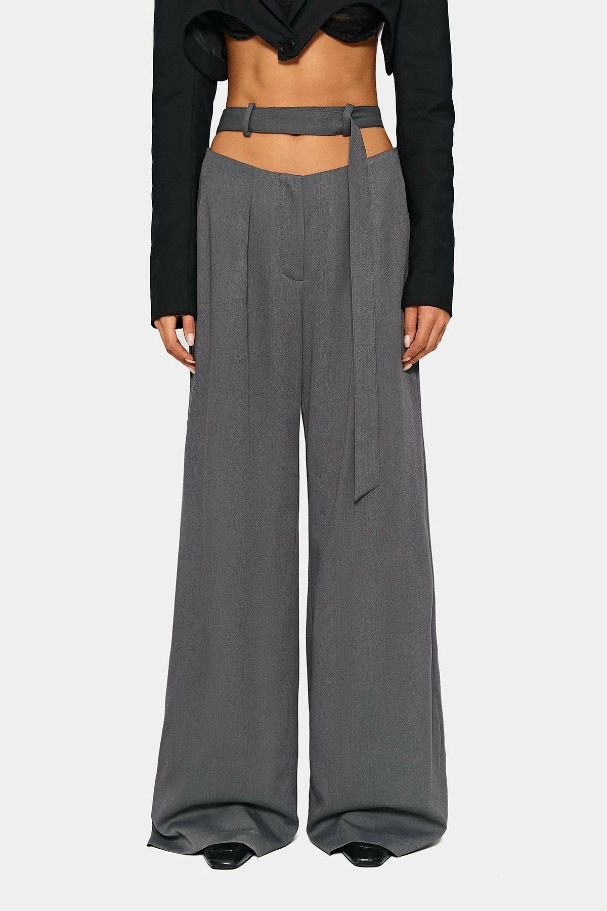 SOLADO Low Waist Tie Detail Solid Wide Leg Pants