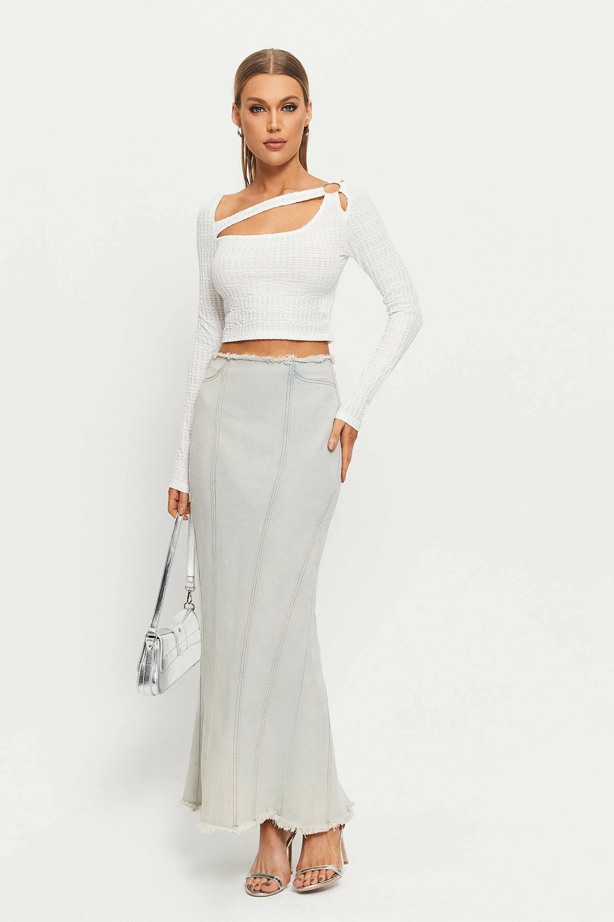Be the first to review “Solado Raw Hem Split Hem Mermaid Denim Maxi Skirt” Cancel reply