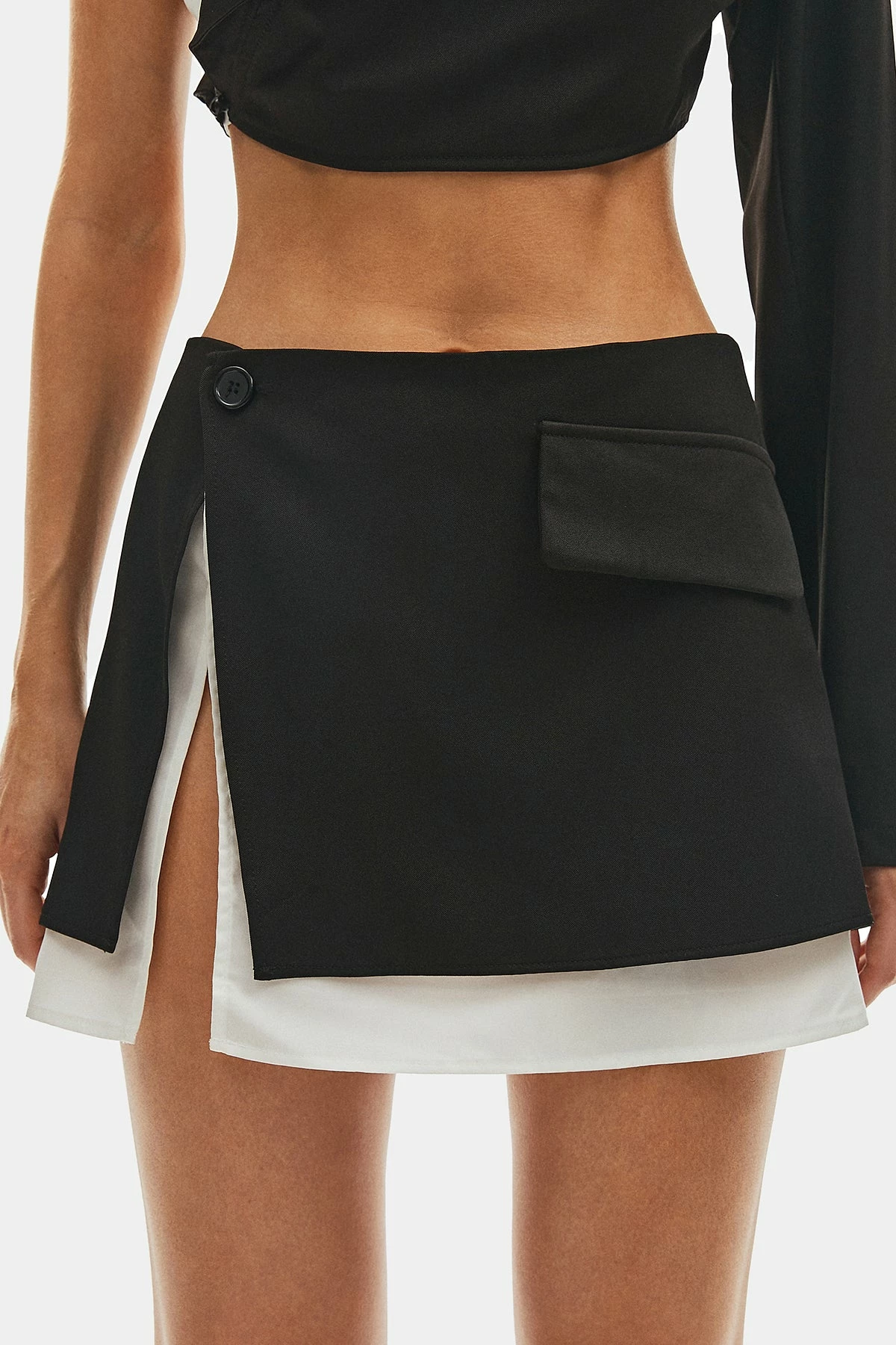 SOLADO Single Buttoned Split Hem Colorblock Mini Skirt