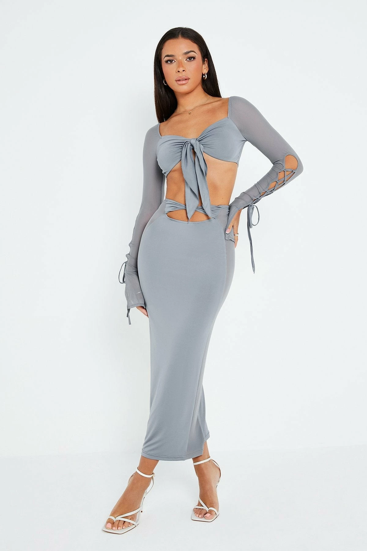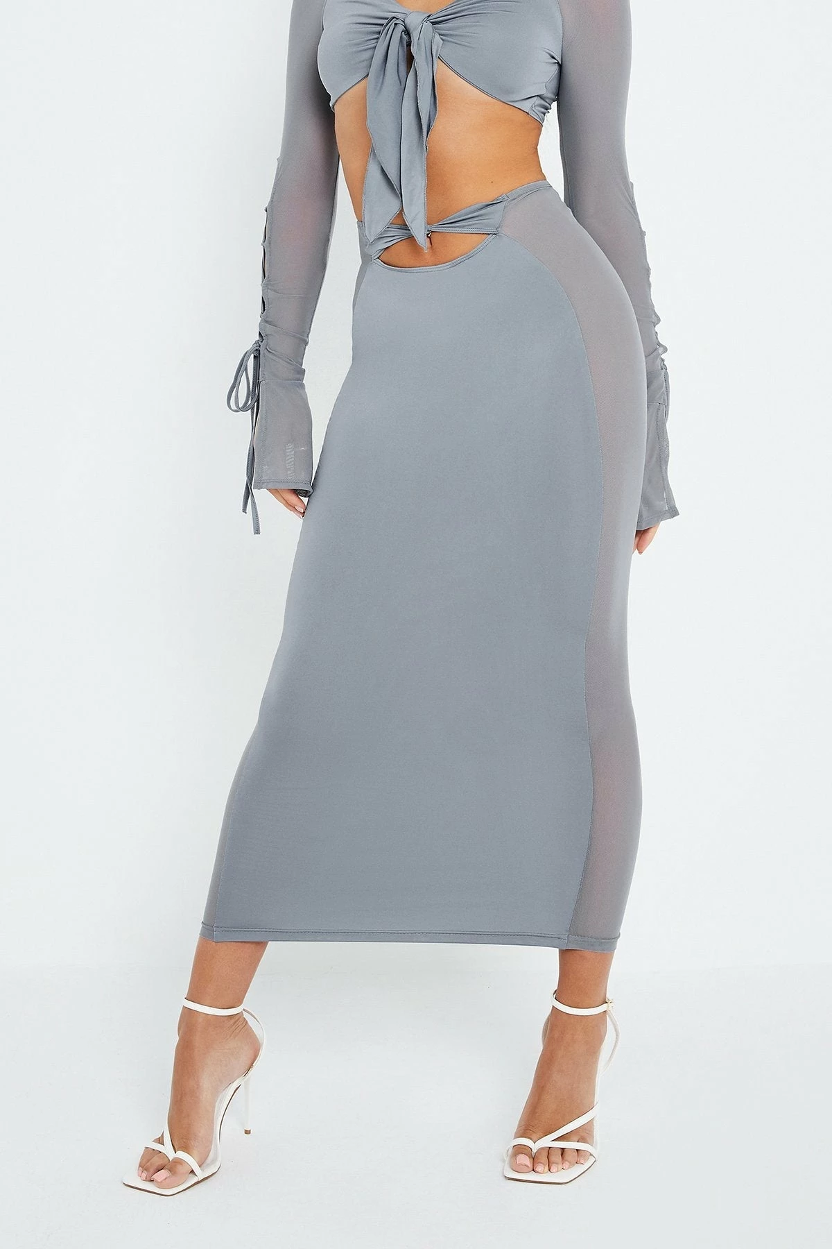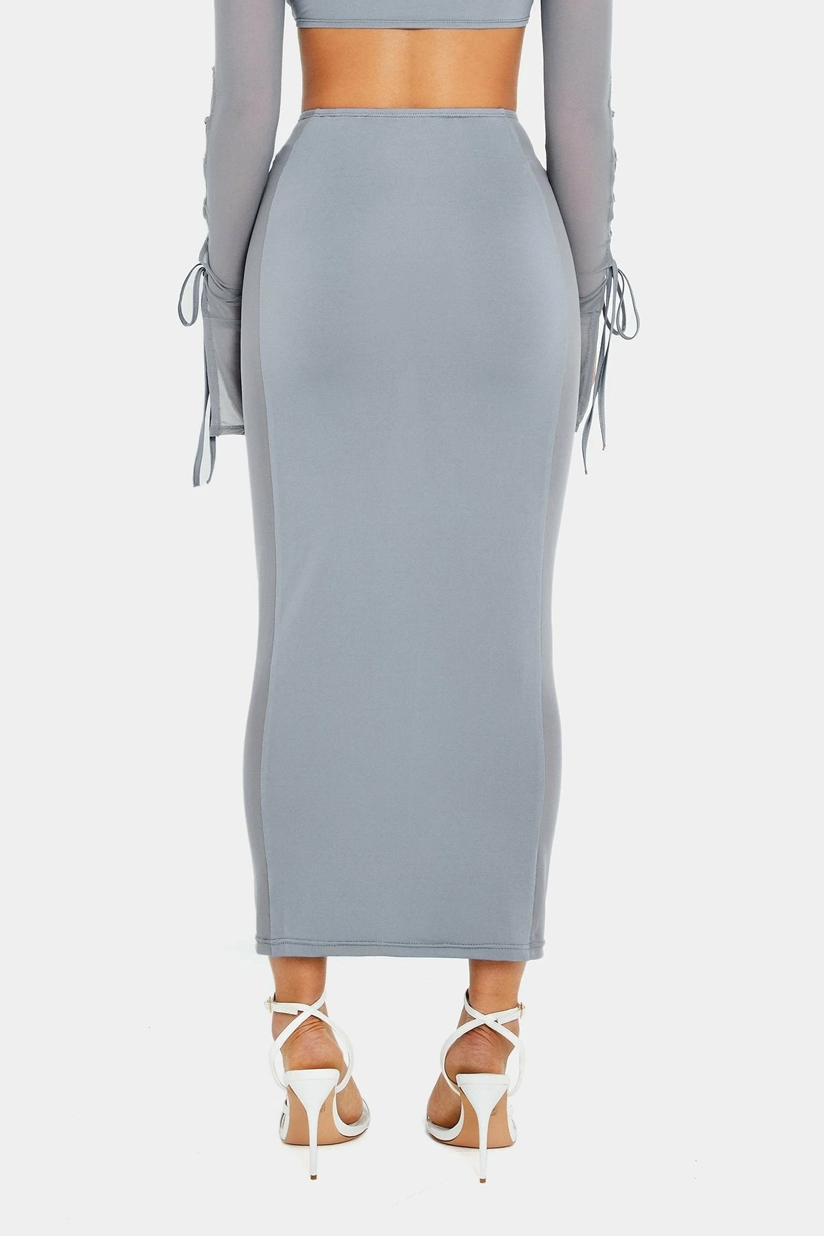 SOLADO Twist Front Cut Out Mesh Splicing Maxi Skirt