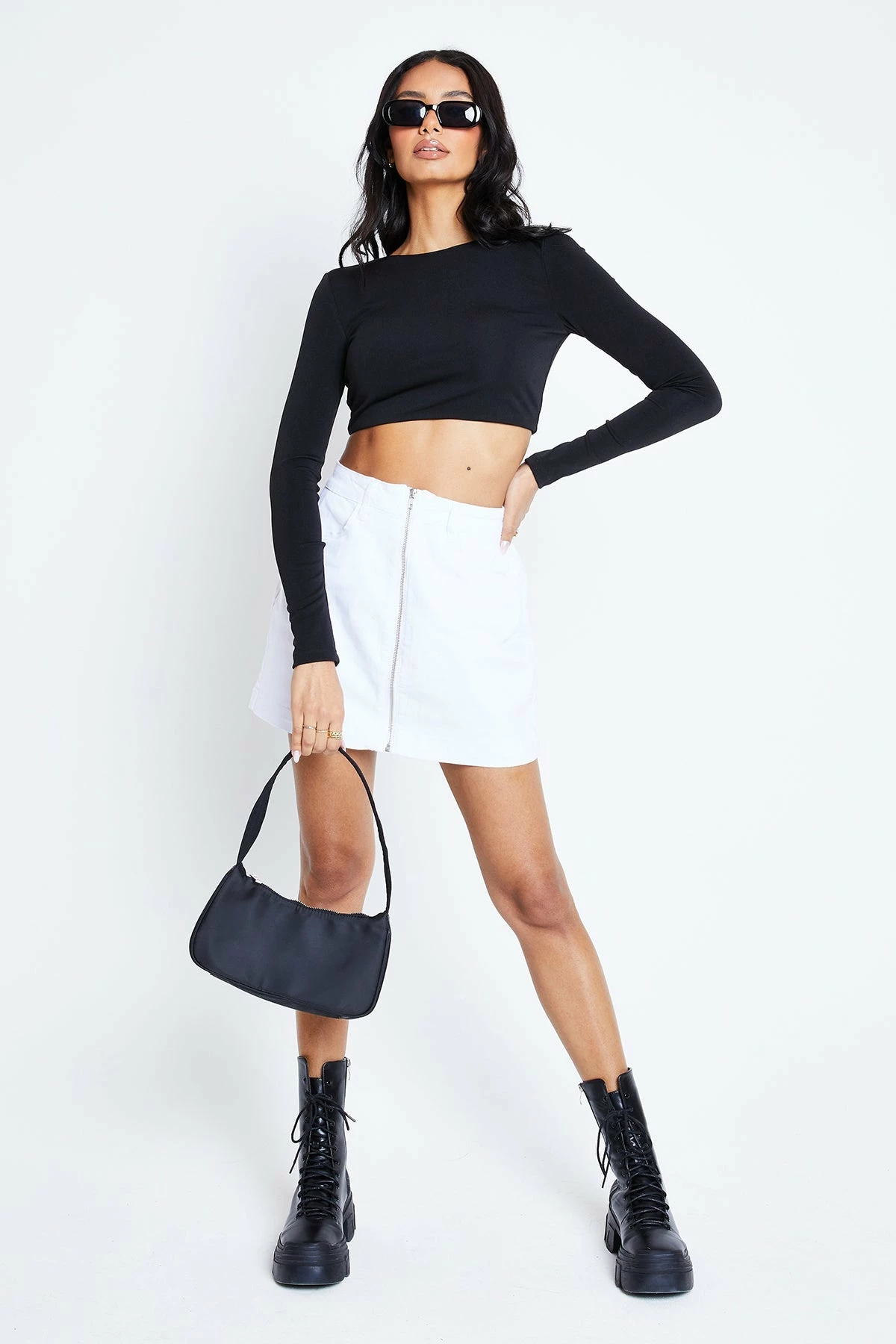 Solado Zipper Front Dual Pocket Solid Denim Skirt